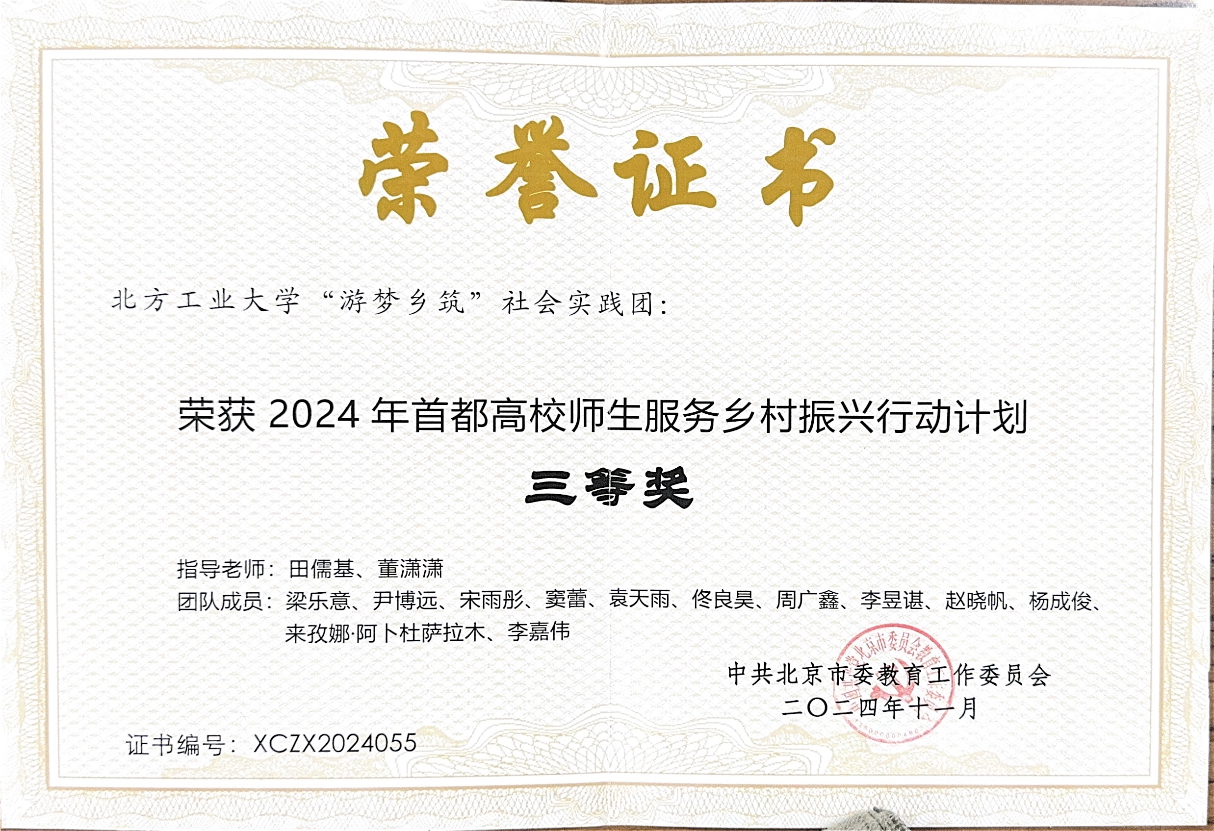 近日,2024年首都高校师生服务乡村振兴行动计划评选结果揭晓,公司“游梦乡筑”社会实践团凭借其在乡村振兴领域的突出贡献,荣获北京市三等奖。