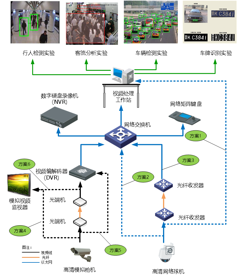 基于模拟/数字/光纤网络传输/存储的高清模拟/高清视频监控系统方案设计实验;