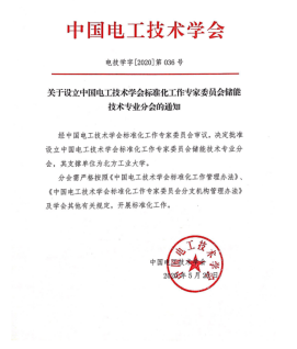 公司成为中国电工技术学会储能技术标委会支撑单位