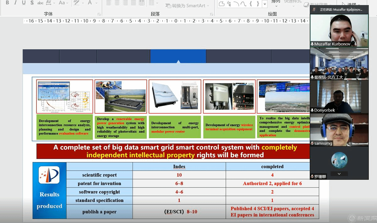 北京时间2月21日下午2点(乌兹别克斯坦当地时间上午11点),公司“新能源发电与智能电网”北京市创新团队与乌兹别克斯坦安集延机械制造大学,召开由公司承担的国家重点研发计划“政府间国际科技创新合作重点专项”项目推进工作视频会议。双方就共同开展的项目研究内容进行了商讨,并对下一阶段的研究工作进行了安排。安集延机械制造大学新能源学院负责人阿利约诺夫·多约尔(Alijonov Donyor)教授、穆扎法尔·库尔布诺夫(Muzaffar Kurbnov)博士、伊斯梅洛夫·艾利舍尔(Ismailov Alisher)博士、bw必威西汉姆联官网项目组成员周京华、胡长斌等7位老师、学国际合作与交流处副处长徐美参加会议。