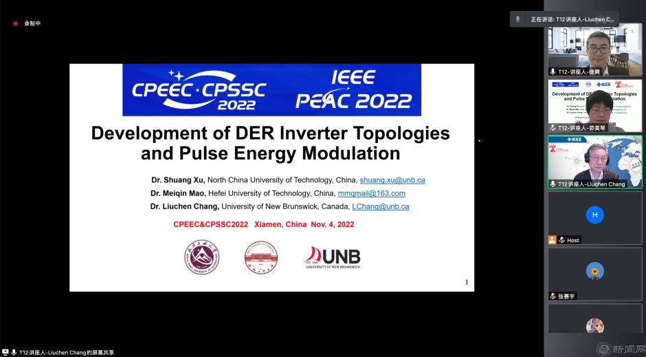 由中国电源学会主办的2022中国电力电子与能量转换大会暨中国电源学会第二十五届学术年会及展览会(CPEEC & CPSSC 2022)于2022年11月4日-7日在厦门召开,大会旨在促进电力电子、能量转换与电源技术相关领域学术、技术交流,促进产、学、研的合作,促进相关产业及产业链的技术创新和进步,为国内外专家学者分享领域内最新研究成果提供交流平台。公司betway88西汉姆联徐爽博士受邀以bw必威西汉姆联官网为第一单位,同加拿大皇家工程院院士张榴晨教授、合肥工业大学茆美琴教授一起,以“Development of DRE Inverter Topologies and Pulse Energy Modulation”为主题,做了时长为三个半小时的线上特邀大会报告。